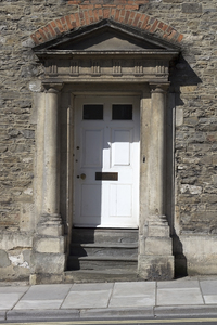 Old door, Engeland, Engels, Groot-Brittannië, architectuur, communie, door, entree, fronton, hellend, helling, historisch, huis, huis, oud, pijler, portiek, stappen, steen, straat, veranda, weg, wiltshire