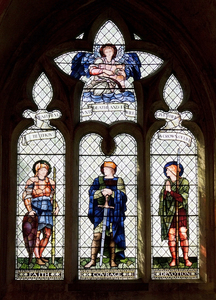 Versierd raam abdij, Engeland, Engels, Groot-Brittannië, abdij, architectuur, communie, donker, engel, gebouw, gelode, geloof, geschilderd, glas, harp, ingericht, kerk, kleur, kleur, kleurrijk, malmesbury, moed, overladen, religie, religieus, sier-, speer, steen, toewijding, venster, wiltshire, zwaard
