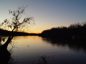 zonsondergang 5, Florida, boom, golf, golven, hemel, hemel, horizon, kreek, landschap, reflection, rimpeling, rivier, silhouet, stomp, struik, struiken, water, zonsondergang