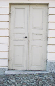 twister deuren, door, draai, het vallen, houten, oneffen, oud, wit