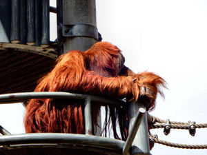 orang-oetan Tower2, Aziatisch, aap, arboreal, behaard, behendig, beklimming, bont, bosmens, gekleurd, gekleurd, grote-apen, harige, hoog-intelligente, intelligent, kleur, kleur, kleurrijk, kleurrijk, klimmer, langharig, omheining, orang-oetan, pongo-abelii, primaat, primaten, rood, roodharig, senior, sterk, sterkte, toren, volwassen, volwassen, zoogdieren