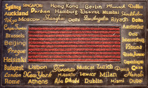 internationale doormat1, abstract, bruin, firma, gevoerd, geweven, inleggen, lijnen, locaties, mat, materiaal, materieel, namen, ontwerp, patroon, plaatsen, rubber, ruw, steden, tekst, verheven, verschijning, vezel, vezel, vezels, vezels, vloermat, wereld, weven, zwart