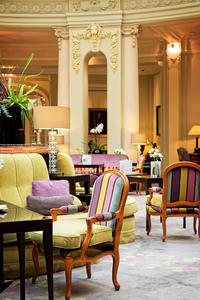 lounge van het hotel, Madrid, Spaans, Spanje, architectuur, comfort, communie, gemakkelijk, hotel, interieur, kamer, luxe, ontspannen, paleis, pijlers, salon, stoelen, tapijt