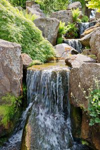 beek en watervallen, Engeland, Engels, Groot-Brittannië, groen, natuur, planten, rocks, rotstuin, stroom, tuin, voorjaar, water, waterval