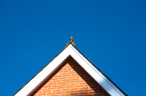 huis dak gevel, architectuur, bakstenen, blauw, copyspace, dak, duidelijk, hemel, huis, puntgevel, tegels