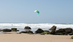 parasurfing, Engeland, Engels, Groot-Brittannië, buitenshuis, cornwall, golven, is, keien, kust, kustlijn, oceaan, opwindend, paraglider, rocks, schuimen, snel, sport, strand, surfen, surfing, water, wild, zand