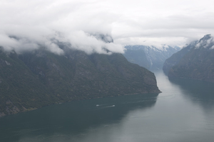 donkere fjord, Noors, Noorwegen, berg, bos, boten, donker, fjord, grijs, grijs, groen, klif, meer, natuur, natuurlijk, panorama, somber, water, wolk, zien