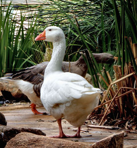 door de reeds3, Anserini, bewaker, blauwogige, boerderij, camouflage, confronterende, durf, gans, ganzen, gedomesticeerde, gent, gevederd, gevogelte, grijs, grijs, groot, kleuren, kleuren, meerkleurig, meerkleurig, mengen, omheining, oranje, overwegen, papyrus, rassen, reeds, snateren, snavel, staart, texturen, variaties, variëteit, veren, vocale, vogel, waggelen, waterwild, wit, zichtbaarheid