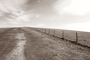 sepia landschap, Engeland, Engels, Groot-Brittannië, South Downs, afstand, eenzaam, eenzaamheid, heuvel, landschap, natuur, omheining, open, pad, ruimte, sepia, voetpad, wijnoogst, winter