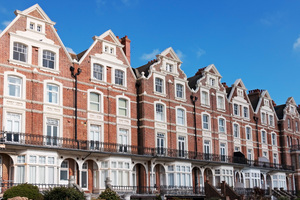 grand rijtjeshuizen, Engeland, Engels, Groot-Brittannië, architectuur, baai, bakstenen, balkon, decoratief, geslaagd, groots, huizen, huizen, ijzer, leuningen, ramen, rijk, sussex, terrasvormige, topgevels