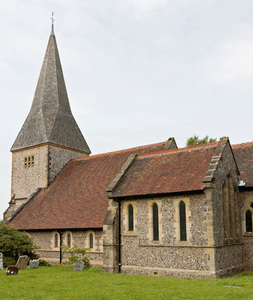 oude dorpskerk, Christelijk, Engeland, Engels, Groot-Brittannië, architectuur, dorp, historisch, kerk, landelijk, oud, oude, religie, religieus, steen, straatkei, sussex, torenspits, traditioneel, vuursteen