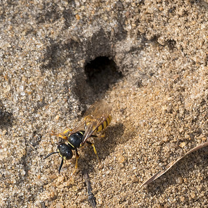 Bijenwolf en burrow, Engeland, Engels, Groot-Brittannië, digger, gedrag, graven, hol, hymenoptera, insect, natuur, natuurlijk, ongewerveld, surrey, wesp, zand
