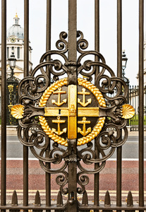 sierpoort detail, Engeland, Engels, Groot-Brittannië, Londen, ankers, decoratief, embleem, gate, gesmeed, goud, ijzer, sier-, stijl, zwart