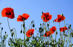 zomer stroomt, Wildflower, blauw, bloeiende plant, bloem, bloem, feestdag, hemel, hemel verse, klaproos, klaproos, klaproos, klaprozen, kleur, kleurrijk, plant, planten, vakantie, veld, velden, warm, weide, zomer, zomerdag, zonnige dag